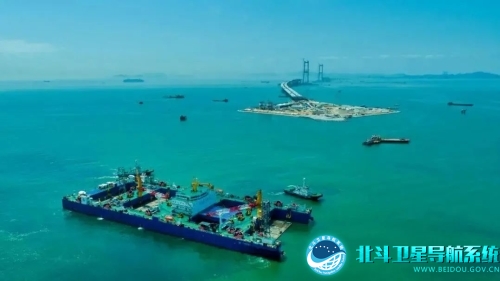 During the construction of the Lingdingyang Bridge catwalk on the Shenzhen-Zhongshan Corridor, construction personnel utilized the Beidou system for dynamic monitoring of the entire installation process. At the same time, they lowered the immersed tube onto the seabed underwater at a depth of 40 meters, achieving precise docking.